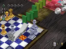 No One Can Stop Mr. Domino![lower-alpha 1] is a puzzle video game developed by Artdink and released for the PlayStation in 1998. The user controls one of five anthropomorphic dominoes, placing other dominoes in rows that will successfully topple while avoiding obstacles and working under a time limit.