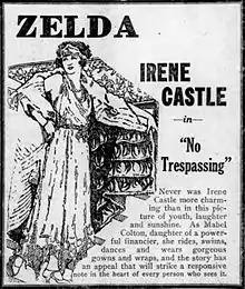 No Trespassing is a lost[1] 1922 American silent drama film directed by Edwin L. Hollywood and starring Irene Castle and Ward Crane.[2] It was distributed by W. W. Hodkinson[3][4] and is based upon a novel by Joseph C. Lincoln, The Rise of Roscoe Paine.[5]