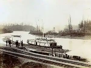 No Wonder was built in East Portland, Oregon, in 1889, just above the landing of the Jefferson Street ferry.[2][3] The original owner was the Willamette Steam Mills & Lumbering Company.[4] Construction was supervised by Capt. Frank B. Turner (b.1859).[4] David Stephenson (b.1835), a native of Saint John, New Brunswick, was the actual builder.[5]
