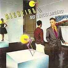 "No tengo dinero" is a song by the Italian Italo disco duo Righeira from their 1983 debut album Righeira. It was written by Michael Righeira, the duo's backing vocalist and producers Carmelo La Bionda and Michelangelo La Bionda.[1] While not as successful as their earlier single, "Vamos a la playa", the song nonetheless achieved high popularity, hitting 12th place in Germany.[2] Much like their previous single, the song is written in Spanish because it was considered an unusual combination with electronic pop music,[3] and celebrating in spite of hardship (in this case poverty, as opposed to nuclear war).