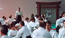 Nobuyoshi Tamura (田村 信喜, Tamura Nobuyoshi, 2 March 1933 in Osaka[1] – 9 July 2010)[2] was a prominent aikidoka and a direct student of Morihei Ueshiba. The son of a kendo teacher, Tamura entered the Aikikai Hombu Dojo in 1953[3] as an uchi-deshi (live-in student) of aikido founder Morihei Ueshiba. He was one of Ueshiba's favorite pupils and since 1964 has greatly contributed to the development of aikido in Europe and France in particular. He was the National Technical Director (DTN) of the FFAB (French Federation of Aikido and Budō). He held the rank of 8th dan and the title of Shihan. Throughout his teaching career he trained many others instructors in various countries around the world but foremost Western Europe.[2] In 1999, he received the medal of "Chevalier de l'ordre National du Mérite" from the French government. Tamura published several books on aikido in French. His dojo, Shumeikan Dojo, is located in the village of Bras, France. His former students include Jorge Rojo Gutierrez, Toshiro Suga, Pierre Chassang and Alain Peyrache.