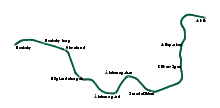 Nockebybanan has a single line (line 12) with ten stops, running from Nockeby to Alvik in Bromma borough. At Alvik metro station, passengers can use the cross-platform interchange provided to change to the Stockholm metro green line (lines 17, 18 and 19), or they can change to Tvärbanan (line 30 and 31) at lower level platforms. The tramway is separated from roads, but has some level crossings.[3] The journey time from Alvik to Nockeby is 14 minutes, with service intervals varying between 6 minutes in the morning and evening peaks, and 20 minutes during the evening and weekend.[4] Typical weekday traffic is around 11,800 boarding passengers (as of 2019).[1]