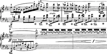4 meter. It is written in ternary form; after the primary theme, the secondary theme starts in measure 19, followed by a modified version of the primary theme in measure 70.