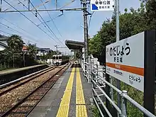 The station has two opposed side platforms connected by a level crossing.The station building does not have automated ticket machines, TOICA automated turnstiles are unavailable.