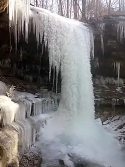 A frozen waterfall on the Brier Creek Trail at Nolin Lake State Park, January 2018