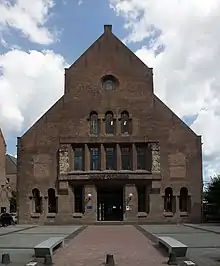 After World War II the usual business of the museum resumed. In 1947 it hosted the academy days of the Royal Netherlands Academy of Arts and Sciences.[16] In 1949 it hosted an exposition about the poet Guido Gezelle, connected to the congress 'Art and Christianity'.[17] The visual arts got an exposition of the work of Herman Moerkerk in December 1949.[18] Meanwhile, change was in the air. In 1949 North-Brabant and Limburg counted for 20% of the Dutch population, but got only 3% of the national subsidies for culture.[19] It was clearly an untenable situation. It was also clear that the position of the 'elitist' Society for Arts and Sciences, which had paid many bills, would suffer if other means became available. The Van Abbemuseum in Eindhoven was considered to be the only up to date museum in Noord Brabant.[19]