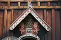 Dendrochronological dating of wood samples indicate that Nore stave church was built after 1167.[3] The church was built with galleries, a chancel and cross naves – an architectural style that was unique in Europe during the Middle Ages. This style has come to be known as Nummedals-type. Decorations are from different periods. Nore is decorated with tendril and animal carvings. Animal characters featured include dragons and lions.