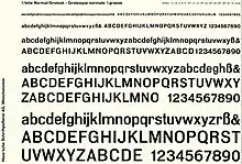Normal-Grotesk is a sans-serif typeface that was sold by the Haas Type Foundry (Haas'sche Schriftgiesserei) of Basel and Münchenstein, Switzerland, and popular in Swiss graphic design towards the end of the metal type period in the mid-twentieth century.