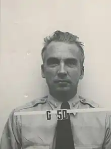 Parsons arranged for Bradbury to be quickly discharged from the Navy,[24] which awarded him the Legion of Merit for his wartime services.[25] He remained in the Naval Reserve, though, ultimately retiring in 1961 with the rank of captain.[26] On October 16, 1945, there was a ceremony at Los Alamos at which Groves presented the laboratory with the Army-Navy "E" Award, and presented Oppenheimer with a certificate of appreciation. Bradbury became the laboratory's second director the following day.[27][7]