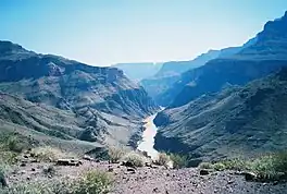 ![]() The Colorado River viewed from the near-terminus of the North Bass Trail. | |