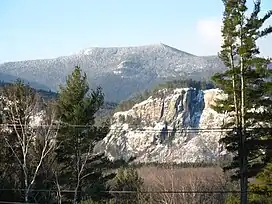 North Moat Mountain, looking southwest from Intervale. Cathedral Ledge cliff is in right middleground.