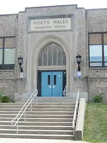 North Wales Elementary School is part of the North Penn School District. The building was North Wales High School from 1927 until North Penn High School was built in the 1950s; it then became an elementary school. The original elementary school from the 1900s was located at the current site of Borough Hall.
