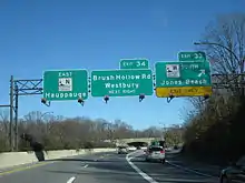 The Northern State Parkway eastbound at the junction with exit 33, the Wantagh State Parkway in West Jericho