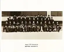 It became Northrup University in 1974 and offered master's degrees.[9] The university's mission statement was "to expand human knowledge and benefit society through research integrated with education. We investigate the most challenging, fundamental problems in science and technology in a singularly collegial, interdisciplinary atmosphere while educating outstanding students to become creative members of society."[15] By 1977, the university had nearly 14,000 graduates in its aviation program.[16]