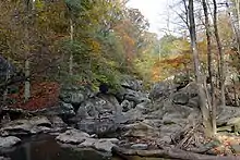 Northwest Branch crosses the geological fall line between the Piedmont and Atlantic coastal plain regions, which forms a small waterfall on the stream 0.5 miles (0.80 km) south of the Burnt Mills Dam parks.[7] This area was a favorite spot of Theodore Roosevelt.[8]