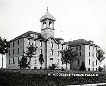 Northwestern College was a secondary school that existed from 1900 to 1932 in Fergus Falls, Minnesota. The school was built based on a need for a local academy for Scandinavian immigrant children within the greater area.[1] It offered Academic, Normal, Preparatory, Commerce, Music, and Art departments of study,[2] and was funded by the Northwestern College Corporation of the Minnesota Conference (Red River Valley Conference after it was formed in 1912) of the Augustana Synod.[1]
