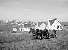 In April 1934, federal officials acquired 1,326 acres (5.37 km2) of farmland in Mount Pleasant Township, and announced construction of the Westmoreland Homesteads. Following Division guidelines, local architect Paul Bartholomew designed the planned community's buildings and its overall layout. On 772 acres (3.12 km2) he arranged 254 individual lots, ranging in size from 1.7 to 7 acres (28,000 m2), in six, mostly curvilinear sections. Each lot was to feature a simply designed, 1+1⁄2-story Cape Cod. Originally, the houses were available in 4- to 6-room models, with a living room, eat-in kitchen, utility room, bathroom and bedroom space. Utilities included water and electricity. The remaining 728 acres (2.95 km2) Bartholomew reserved for a cooperative farm, a schoolhouse, playground, post office, and other common buildings. These original depression-era Cape Cod–style homes are called "Norvelt Houses" by the locals. A six-room house on more than 2 acres (8,100 m2) sold for $2131.28, a price that reflected annual mortgage payments of $212.50, which was one-fourth of the prospective purchasers' estimated annual cash income of $850, and a 40-year mortgage at 3% interest.[7] Over 1,850 applied for the government properties, which spanned nearly 1,500 acres. Two hundred and fifty four families received houses.[8]