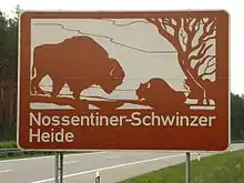 The Nossentiner/Schwinzer Heath Nature Park (German: Naturpark Nossentiner/Schwinzer Heide) lies in the western part of the Mecklenburg Lake District in the districts of Mecklenburgische Seenplatte, Rostock and Ludwigslust-Parchim in the north German state of Mecklenburg-Vorpommern. It lies between the towns of Plau am See, Goldberg, Krakow am See and Malchow. It was founded in 1990 and finally confirmed in the state act of 1994. The total area of the nature park is 365 km² of which 60% is wooded, about 14% consists of rivers and lakes and the remainder is cultural landscape. There are almost 60 lakes in the nature park and the rivers Nebel and Mildenitz. Special features of the nature park are the sandar - sand and gravel deposits left by the ice age. Numerous bogs are also dotted across the countryside. The nature park is a breeding ground for white-tailed eagle, osprey und bittern. In addition, wisent are bred on the Damerower Werder. The nature park is easily accessed from the Malchow junction on the A 19 motorway. In the vicinity of the nature park is the Dobbertin Abbey. To the north is the Mecklenburg Switzerland and Lake Kummerow Nature Park and to the northwest the Sternberg Lake District Nature Park.