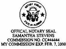 A notary seal of the rubber stamp type is required to be affixed to all notarized paper documents. The rubber stamp must include the commissioned name of the notary public, the words "Notary Public-State of Florida", the notary's commission number, and the date on which the notary's commission expires. Prior to the mid-1970s, the only statutory requirement regarding notarial seals was that one be used and that it include the words "Notary Public" and "State of Florida at Large"; the name of the notary was optional, and the law did not specify what types of seals were permissible. This law was later amended to state that the seal must be round in design and of either the rubber stamp or impression type. In the early 1990s, the statute was again changed to require a rubber stamp seal, with an impression type seal being optional and not acceptable unless used in conjunction with a rubber stamp. However, many notaries continue to use the impression seal with their rubber stamp to allow for easy detection when trying to determine which document is an original. This process is made more difficult for notaries who only use a rubber stamp seal, as the Florida statutes require that the seal be affixed in only photographically-reproducible black ink.