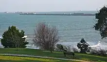 A 90-millimetre searchlight defence was situated at the bottom of the garden, overlooking Portland Harbour to illuminate surface targets. It would have been constructed between 1940–41, using concrete. The emplacement remained in the gardens throughout the 20th century, until it was destroyed by a landslip in 1988. However, by this point the Nothe Fort had become a tourist attraction, and members of the Weymouth Civic Society decided to rebuild a replica of the structure inside the grounds of the fort.[6][7][8] The replica was equipped with an original 90mm searchlight and associated equipment, and remains accessible to the public through entry to the fort.[9] It is situated on the northern side of the fort. Another searchlight emplacement, used as a sentry light to guard the entrance of Weymouth Harbour, is situated nearby at Weymouth's South Pier, and has become scheduled under the Ancient Monuments and Archaeological Areas Act 1979.[10]