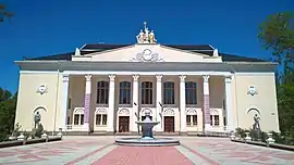 Schools 1 and 2 opened in the fall of 1950,[8] and on October 10, the Dniprobud administration created a housing department tasked with building a new town of hydroelectric engineers.[9] By April 20, 1951, the foundation of the first residential building, at Karl Marx, 31, had been laid, followed by the building's opening on 30 May.[9]