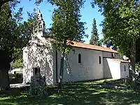 The church is located in the nearby Kulina. A chapel used to be there since at least 1774, when a marriage is recorded. It was torn down in 1830 and today's church was built. Its dimensions are 15x6 metres. The apse is squared and there's a sixteen-pointed rosette on the front. The belfry has three bells. A new altar was placed in 1965 when the bishop was Veselko Leutić. Thorough renewals happened in 1988 when the bishop was Dušan Brečić. A concrete platform was also built with a balcony for the bells. During the time of bishop Dušan Brečić in the late 1990s, it was removed because it had been considered unpleasant. A new roof was built in September 2003 during the time of bishop Ljubo Pavić, and the belfry was repaired.[3]