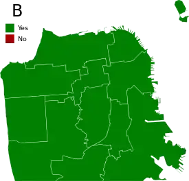 Proposition B would authorize the City to issue $248 million in bonds for the repair and improvement of streets, bicycling paths, and pedestrian and traffic infrastructure. This proposition required a two-thirds majority to pass.