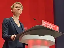 Deputy Leader of the Labour Party Angela Rayner was not notified of the reshuffle, as it was first reported while she was making a keynote speech on Parliamentary Standards at the Institute for Government. The resignation tweet from Cat Smith was sent out during the Q&A section, so Rayner was caught off guard.[14] Starmer was criticised for not notifying his deputy before announcing the reshuffle.[15] Lisa Nandy dismissed claims that Rayner had been humiliated over the alleged snub, stating that the reshuffle showed "we’re moving north" to a question on Sky News asking about the left–right focus on the reshuffle which had been discussed in the media.[16] A similar rift occurred at the reshuffle in May 2021, in which Rayner was demoted from her position as party chair and national campaign coordinator after Labour's heavy loss in the 2021 Hartlepool by-election.[17][18]
