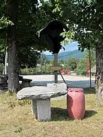 The local church, dedicated to Saint George, was first mentioned in written documents dating to 1526. It was demolished on 29 November 1955.[9] A cross commemorating the church stands at the site with a plaque inscribed "In memory of the burned and demolished Saint George's Church, 29 November 1955" (V spomin na požgano in porušeno cerkev sv. Jurija – 29. nov. 1955).
