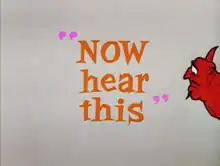 Now Hear This is a 1963[1] Warner Bros. Looney Tunes cartoon directed by Chuck Jones and Maurice Noble, and written by Jones and John Dunn.[2] The short was released on April 27, 1963.[3] It was nominated for the Academy Award for Best Animated Short Film the following year.[4]