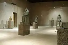 The Nubian Museum covers an area of 50,000 square meters, 7,000 of which are devoted to the building, while the rest are devoted to gardens and other public spaces.[1] The building has three floors for displaying and housing, in addition to a library and information center. The largest part of the museum is occupied by the monumental pieces, reflecting phases of the development of Nubian culture and civilization.
