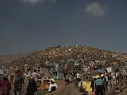 The Virgen de Lourdes Cemetery (Spanish: Cementerio Virgen de Lourdes), popularly known as Nueva Esperanza, is a popular cemetery located in the district of Villa María del Triunfo, Lima, Peru. It was created in 1961 with the purpose of being used by immigrants from other provinces.[1] It is settled on 60 hectares and contains more than a million tombs.[2] The site is considered a tourist attraction, frequented by two million people each year to cultural activities.[3][4][5]