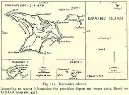 Map from 1945 showing Nugent Island in relation to Raoul Island and others