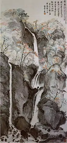 Nukina Kaioku (貫名 海屋, 1778–1863) was a Japanese painter and calligrapher.[1] He had many pseudonyms, but Kaioku (海屋) and Sūō (菘翁) are the most well-known. He was considered a leader in the field of Japanese calligraphy during the Edo period. He was also good at painting in the Nanga style, which is a Japanese artistic style mean to emulate Chinese art and culture.