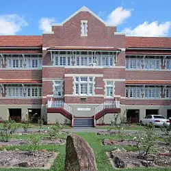 Other commemorative features exist at the school. A silky oak tree (Grevillea robusta) commemorating 100 years of state education in Queensland (1875-1975) was planted in the northeast corner of school grounds.[114] Set within the rose garden on the Bage Street side of the brick school building is a memorial commemorating those who served their country during World War II, which was unveiled in November 1995.[1]