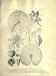 | Botanical illustration of Nymphaea lasiophylla and Nymphaea rudgeana from the publication "The Waterlilies, a Monograph of the Genus Nymphea" by Henry Shoemaker Conard (1905) | |