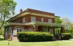 The O.F. and Lulu E. Fryer House is a historic residence located in Fairfield, Iowa, United States. Ode Franklin Fryer was a local banker. This Prairie School house was built for him and his wife Lulu in 1920. It was designed by Guy A. Carpenter, a local freelance architect. The historic designation includes the house and the detached garage. The two-story brick rectangular structure features a flat roof, a single-story solarium, a full-width porch, and a porte cochere. A prominent feature of the house is its wide eaves.[2] The house was listed on the National Register of Historic Places in 1999.[1]