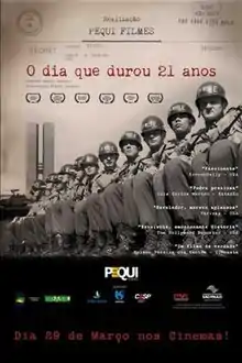 O Dia que Durou 21 Anos (The Day That Lasted 21 Years[1]) is a Brazilian documentary film directed by Camilo Tavares that shows the influence of the U.S. government in the 1964 Brazilian coup d'état. Original White House tapes with John F. Kennedy and Lyndon Johnson as well as CIA Top Secret documents reveal how the US government planned to overthrow Brazilian elected president João Goulart. The film has won three awards in international festivals cinemas, two of these in the United States and one in France.