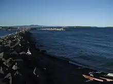The Oak Bay breakwater was built in 1959 and funded by the Federal Government of Canada. One side is on Turkey Head Point and the other on Mary Tod Island.