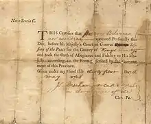 The Oath of allegiance signed by Pierre Beliveau, an Acadian, on 31 May 1768