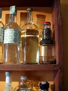 Though most chocolate is consumed as a hot beverage, it is also an important ingredient in a cold beverage called tejate. It is made with fermented corn, cacao, and the seed of the mamey fruit. It is traditionally served in dried and painted gourds.[12] Tejate is usually found in the towns just outside the city of Oaxaca. It is similar to the pozol of Chiapas. The drink was previously considered a complete meal.[9] However, tejate is becoming less common and harder to find.[13]