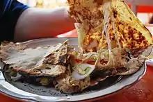 Another distinctive ingredient is Oaxaca cheese also called quesillo, used to make empanadas, tortas and tlayudas.[9]