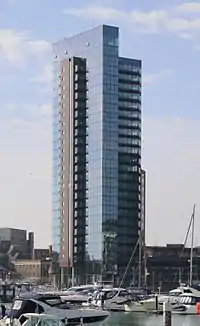 Ocean Village is a mixed-use marina, residential, business and leisure development on the mouth of the River Itchen in Southampton, on the south coast of England. Originally the site of Southampton's first working docks, the "Outer Dock" which opened in 1842, the area was redeveloped in 1986 and became the leisure marina it is today.[1] After experiencing a period of stalled development with the late-2000s recession, Ocean Village underwent another series of major, multimillion-pound redevelopment projects. Current recreational facilities include a cinema, cafes, wine bars and restaurants.