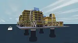 Ocean colonization is the theory of extending society territorially to the ocean by permanent settlements floating on the ocean surface and submerged below, employing offshore construction.[1] In a broader sense the ocean being subject of colonization and colonialism has been critically identified with exploitive ocean development, such as deep sea mining.[2][3] In this regard blue justice groups have also used the term blue colonization.[4]