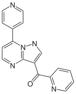 Condensation of 4-Acetylpyridine[8] with N,N-Dimethylformamide dimethyl acetal (DMFDMA) gives the "enamide" (3). This is then condensed with (3-Amino-1H-pyrazol-4-yl)(2-pyridinyl)methanone (4) (96219-90-8).[9][10] This is the same intermediate as was used in the synthesis of zaleplon in which the nitrile is replaced by a 2-acetylpyridil moiety. This affords the anxiolytic agent ocinaplon (5).