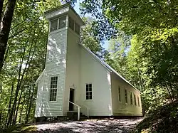 The Oconaluftee Baptist Church, also known as the Smokemont Baptist Church is a historic Baptist church in Great Smoky Mountains National Park, near Cherokee, North Carolina. It is located off United States Route 441, overlooking the Smokemont Campground of the park. It is a basically rectangular wood-frame structure, 30 feet (9.1 m) wide and 50 feet (15 m) deep. The church's tower projects from the front of this main block, and rises about 10 feet (3.0 m) above the level of the gable roof; it does not have a spire or steeple, and its uppermost section is a louvered belfry. This church building was built in 1912 for a congregation organized in 1836. The congregation's records (which extend only to 1895) form a valuable documentation of local history. The church remained in active use until the area was made part of the national park in 1935, and has seen occasional use since then.[2]