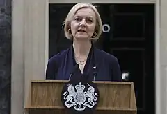 ![]() Liz Truss announcing her intention to resign as Conservative leader on 20 October 2022 | |