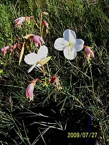 Oenothera nuttallii, the white-stemmed evening-primrose, is a species of flowering plant in the family Onagraceae.[2] It is native to western Canada (except British Columbia), and the north-central United States, and it has been introduced to Illinois.[1] A perennial reaching 60 cm (24 in), it is found in grasslands, sagebrush steppes, and plains, usually in sandy soils.[2]