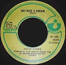"Oh! Wot a Dream" was a Kevin Ayers single taken from his fourth solo album Bananamour. Ayers has stated in interviews that 'Oh! Wot A Dream' was about his friend and colleague Syd Barrett[1] – "You are the most extraordinary person / You write the most peculiar kind of tunes / I met you floating as I was boating / One Afternoon". 'Connie On A Rubber Band' was a non album track that would later be included on 1976 compilation Odd Ditties.