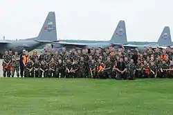 The Ohio Wing holds a cadet encampment annually. Serving as a weeklong training camp for cadets, the encampment involves instruction in discipline, teamwork, and leadership. Other activities involve instruction in drill and ceremonies, customs and courtesies, basic CAP knowledge and military tradition. Encampment attendance is a prerequisite for the Gen. Billy Mitchell Award. Senior members may also be awarded the ribbon for providing leadership at CAP this encampment. The encampment is held at Wright-Patterson Air Force Base in Dayton, Ohio.[6][7]